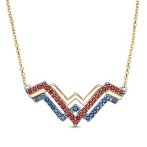 Wonder Woman 80th Anniversary Garnet and Blue Sapphire Dress Pendant in Sterling Silver and 10K Gold