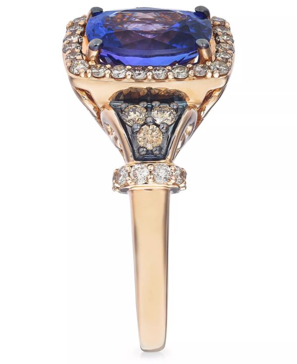 A striking cushion-cut Blueberry Tanzanite? (2 ct. t.w.) makes a cool contrast to the warm tones of Nude? (1/3 ct. t.w.) and Chocolate Diamonds? (1/8 ct. t.w.) set in rich 14k Strawberry Gold?