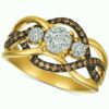 A trinity of round-shape white diamond clusters sits atop an openwork round-shape chocolate diamond accented shank to create this stunning ring (3/8 ct. t.w.)