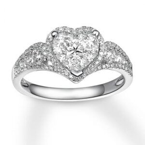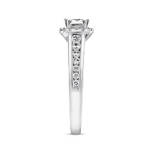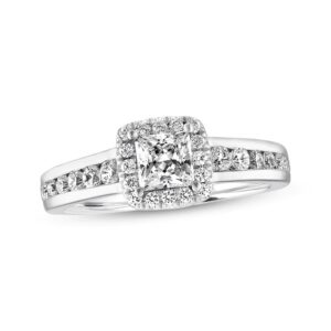 A dazzling 1 carat princess-cut diamond sparkles at the center of this impressive solitaire engagement ring for her. The band is styled in 14K white gold.