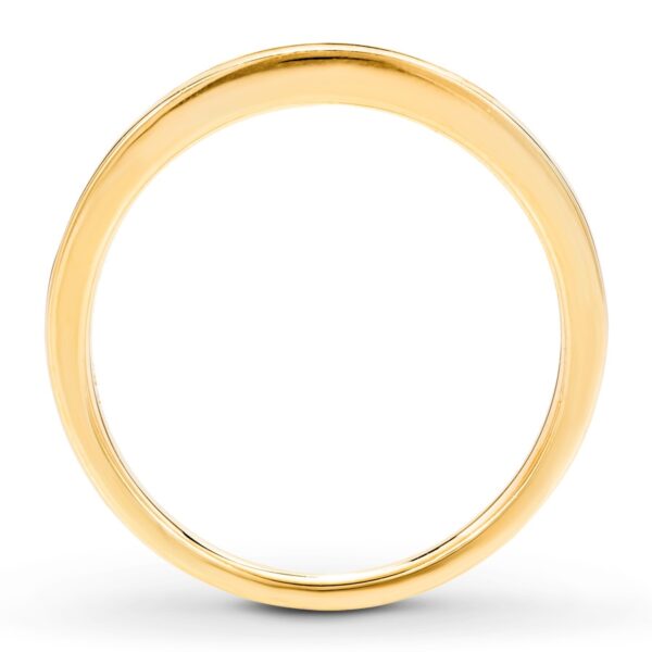 This lovely wedding band for her sparkles with round diamonds channel-set in 14K yellow gold. The ring has a total diamond weight of 1/5 carat.